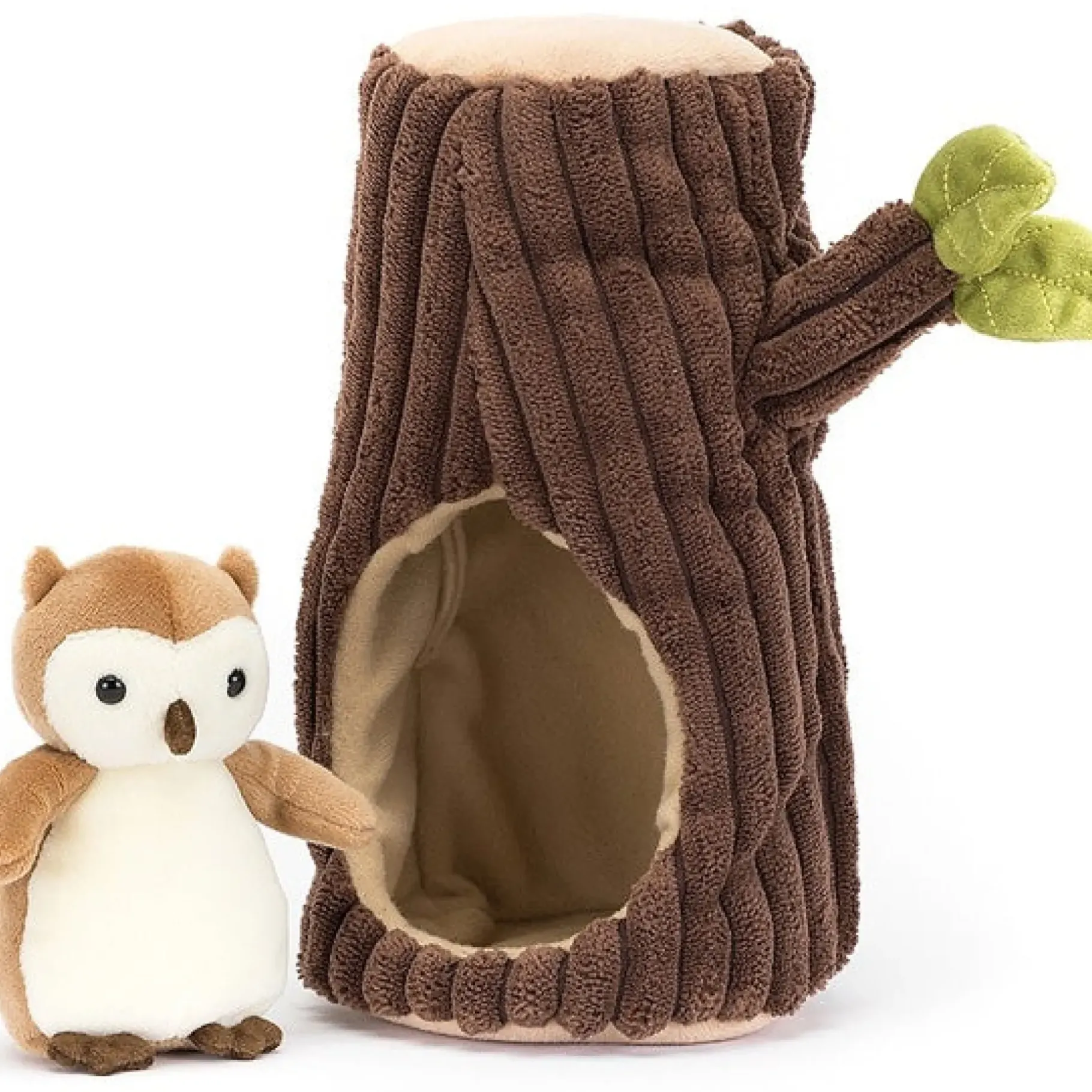 This Jellycat Forest Fauna Owl And His Tree-Trunk Home Is Hootiful. With Its Chunky Cream Fur, Sweetheart Face And Bobbly Claws This Little Forest Friend Will Sleep All Day Ready To Go Out At Night.